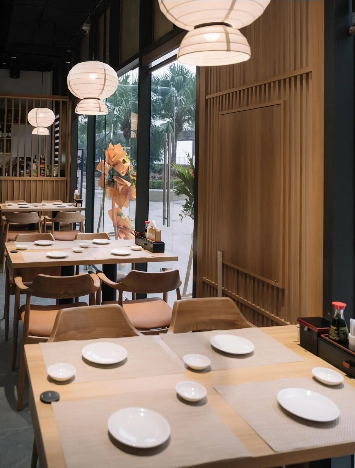 Warm and elegant space – designed with natural wood tones and subtle Japanese details, providing flexible seating for groups, couples, families, and private VIP rooms.